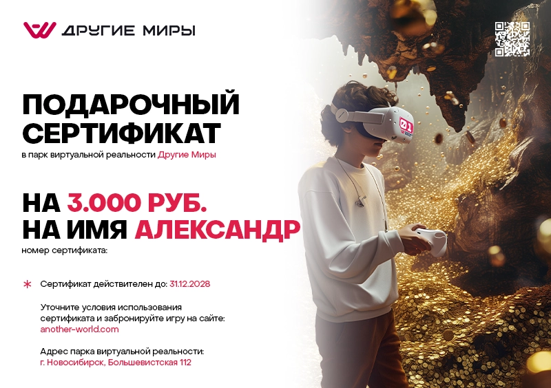 Сертификат можно получить самовывозом на нашей VR-арене.